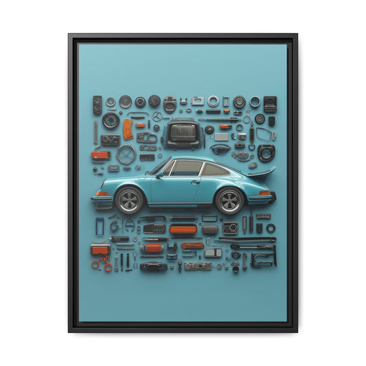 White Classic Porsche Framed Canvas