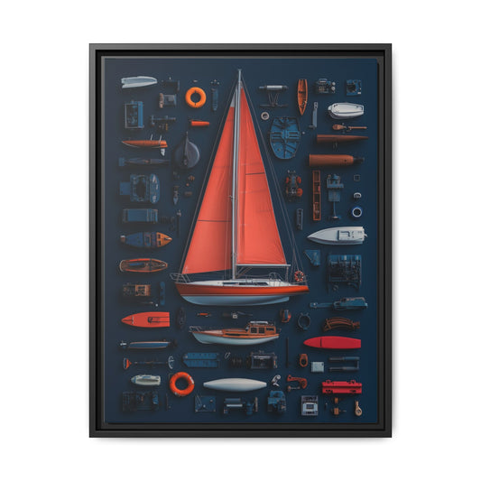 Sailboat Red Framed Canvas